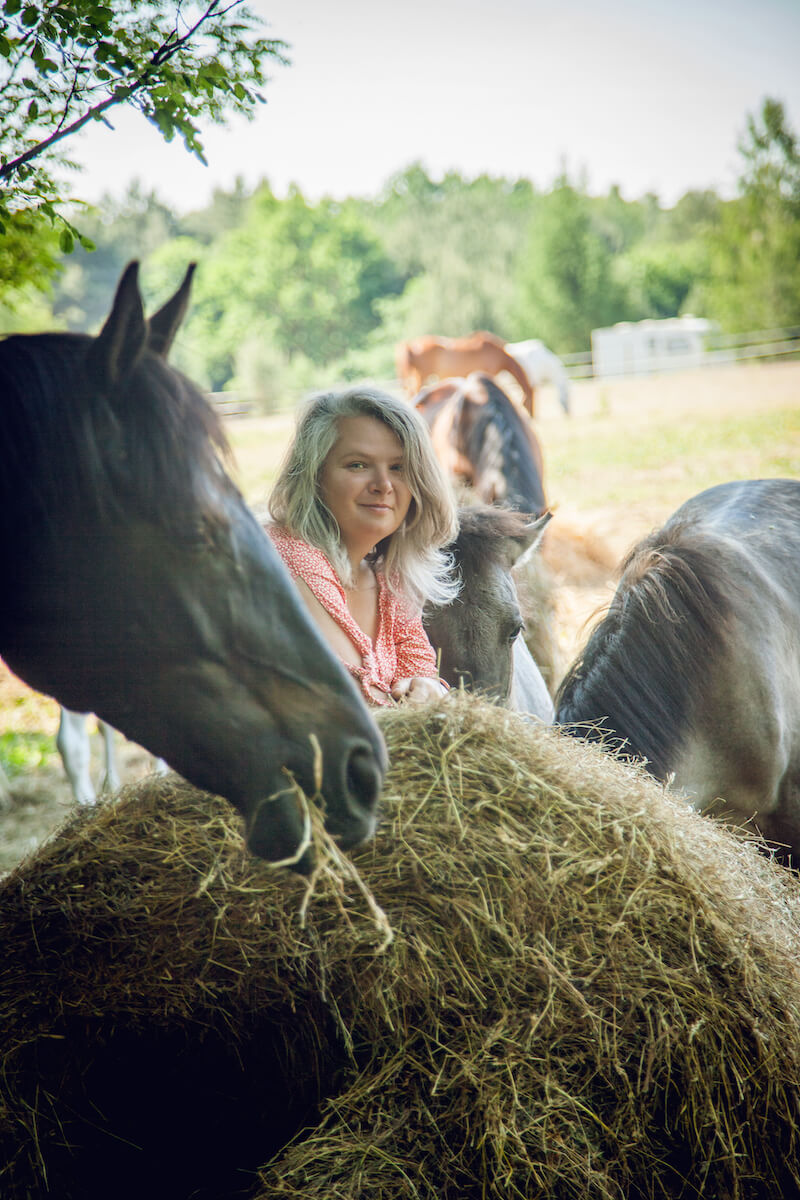 Wszystkie moje inicjatywy dzieją się w lesie, na łące, albo chociaż w parku. Korzystają z nich rodzice i dzieci,nauczyciele, liderzy. Dlaczego konie? Jakości, które konie utożsamiają jako gatunek – relacyjność ponad terytorialność, proces ponad cel, współpraca ponad rywalizacją, intuicyjność przed racjonalnością – to w dużej mierze potrzeby współczesnego świata. Razem z Tomkiem Sadzewiczem tworzę Fundację Pasikonie, w ramach której oprócz rozwoju z końmi, dajemy wsparcie rodzicom oraz profesjonalistom działającym na rzecz dzieci i młodzieży. Od 2015 roku latem i zimą organizujemy Campy rodzinne, gdzie można zaznać uczącej i wspierającej się wioski. Jestem mamą dwóch dostarczających wrażeń chłopców.